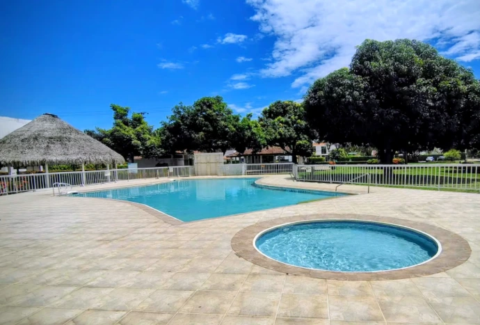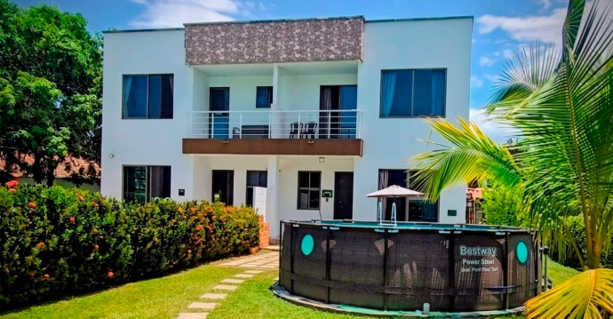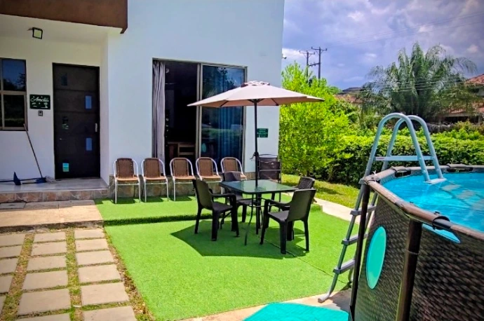 Cuenta con piscina privada de 5x5x1,2 metros redonda, perfecta para refrescarse y compartir con tu familia y amigos, adicional cuentas con la piscina del condominio a tan solo 30 metros de la casa con un kiosco que ofrece vìveres básicos, si necesitas puedes pedir a domicilio si deseas alimentos preparados o mercado específico.