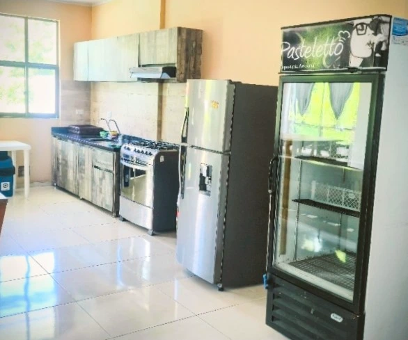 Dotada con ollas, platos, vasos, cubiertos, 2 neveras.